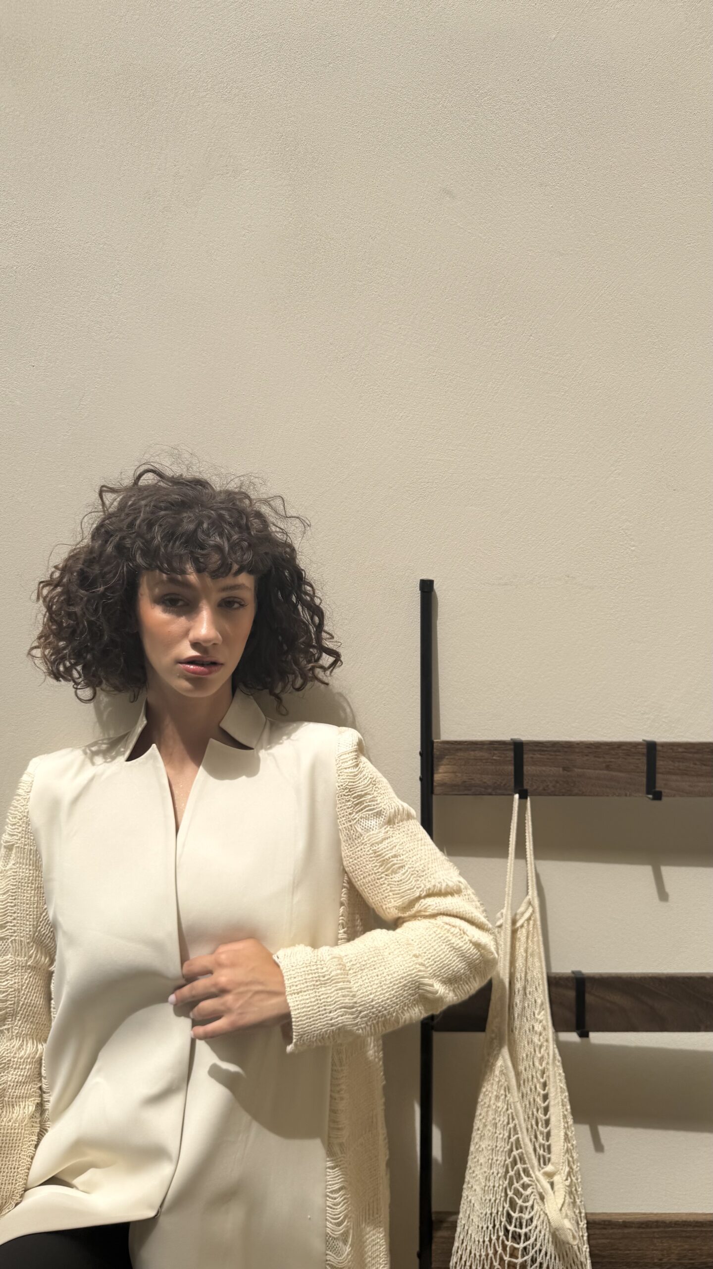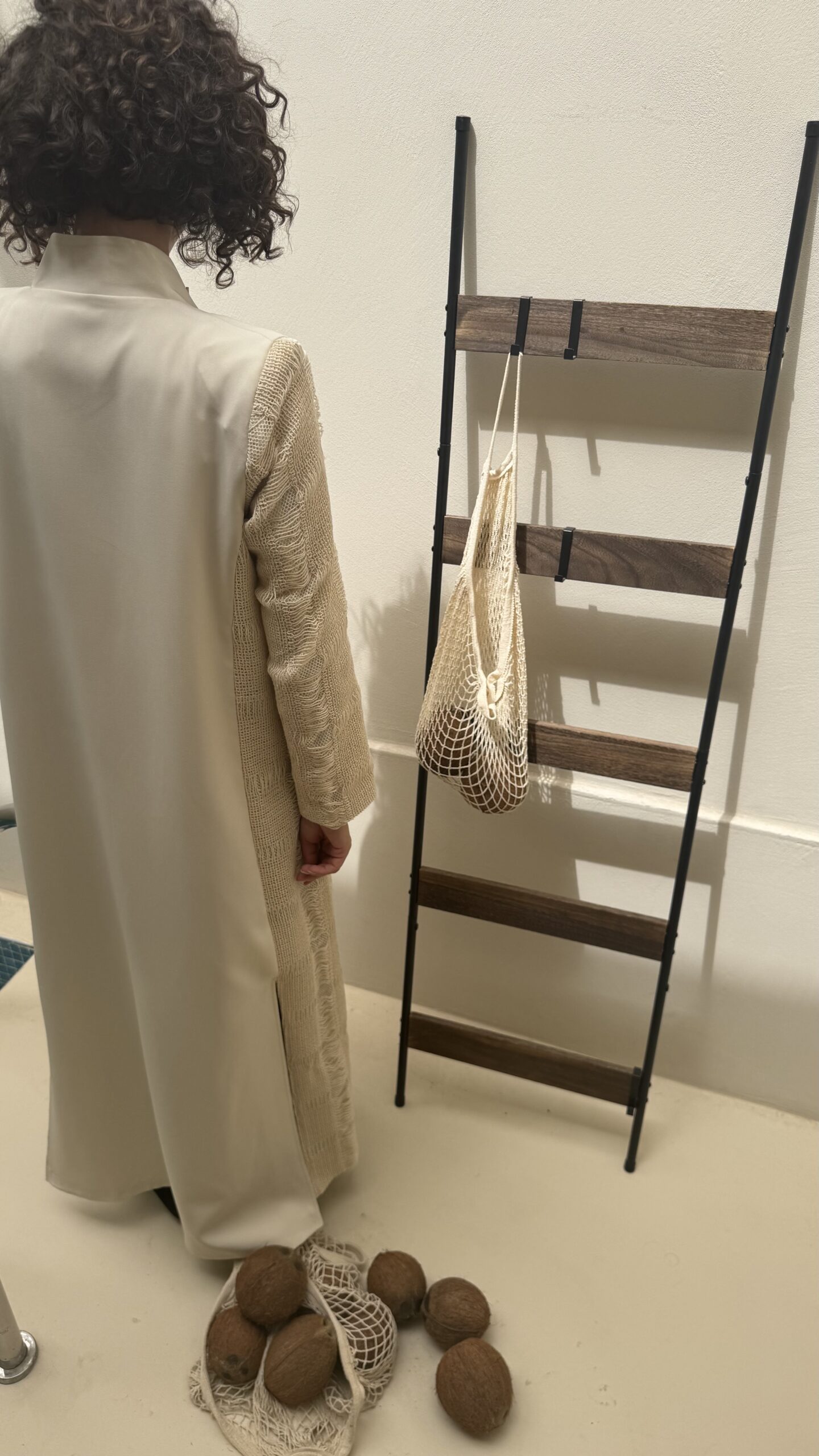 ⁩ long knit sleeve beige