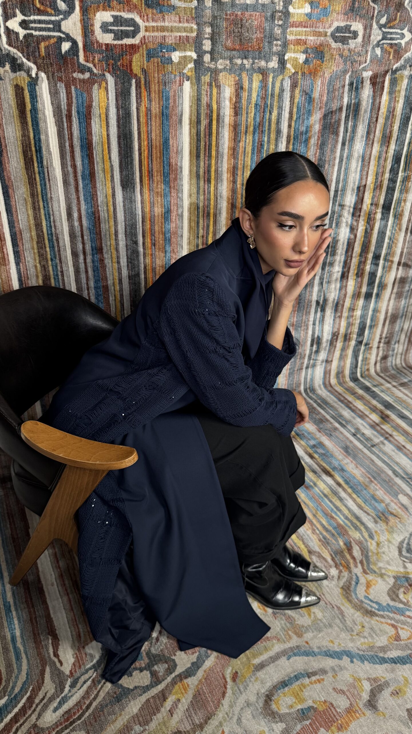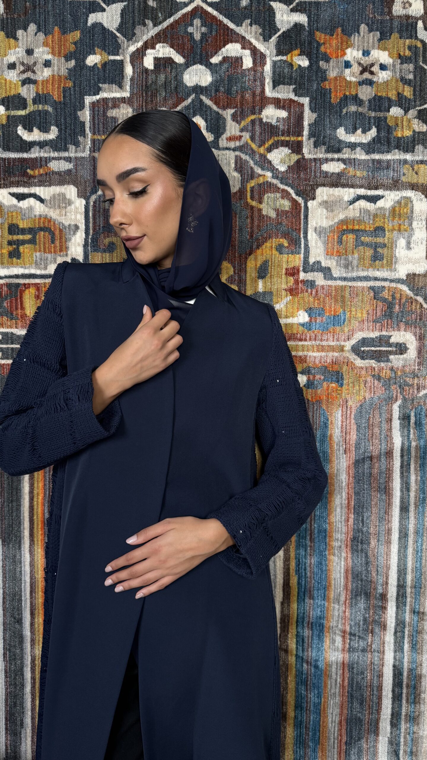 نوع القماش كريب ايطالي .. الاكمام شبك وعلى جنب العباية