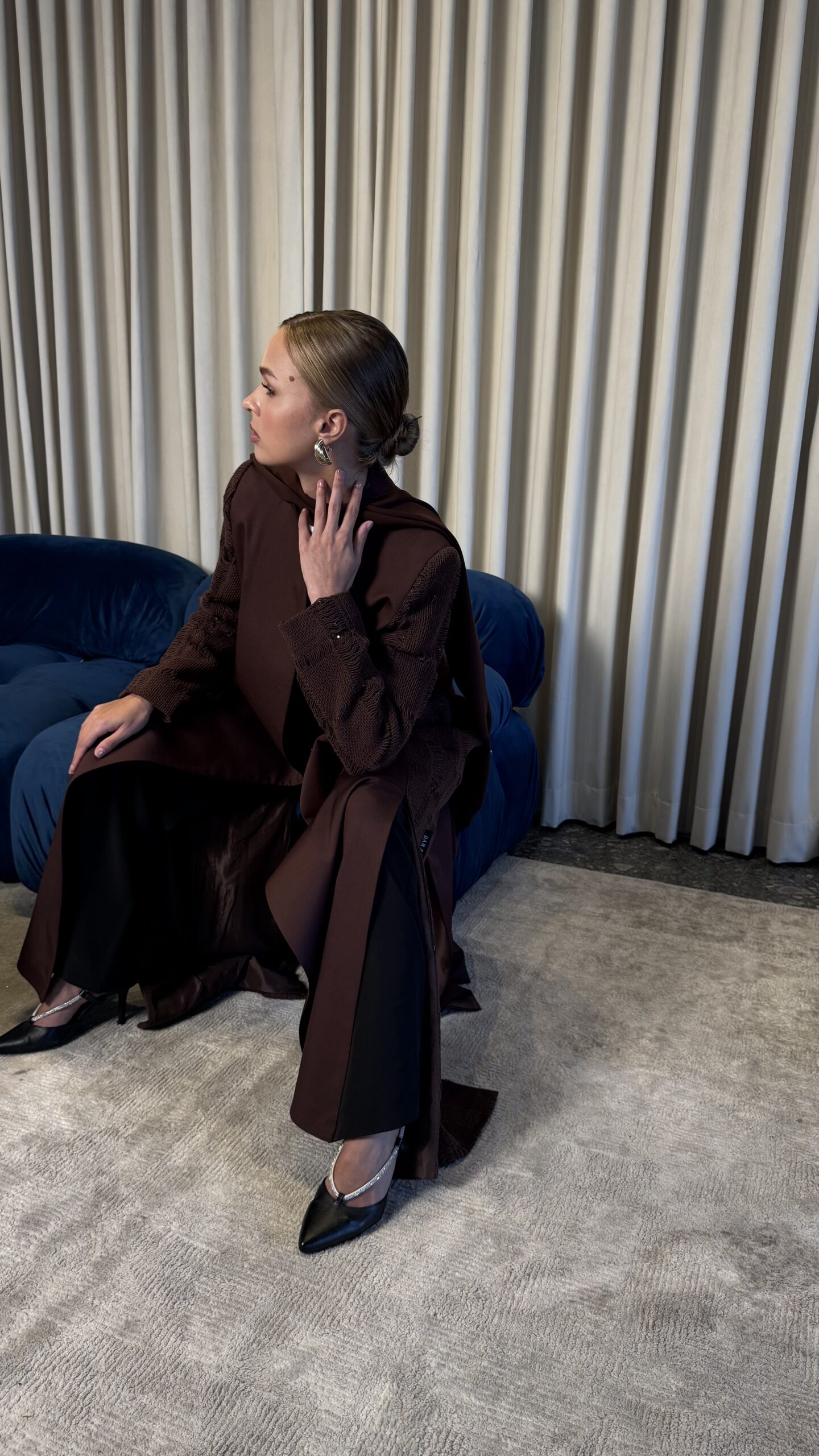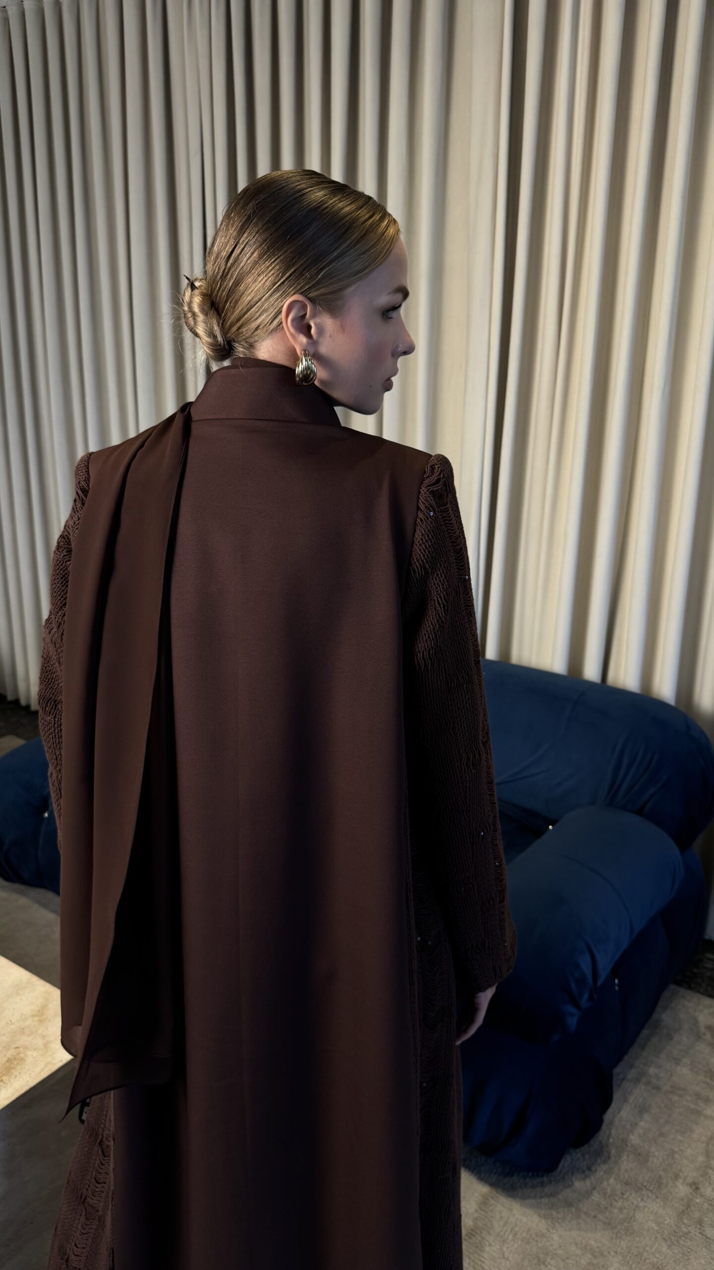 نوع القماش كريب ايطالي .. الاكمام شبك وعلى جنب العباية